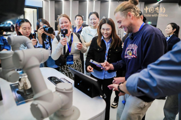 Members of a foreign media delegation toured the Shenzhen Science and Technology Museum on November 26, enjoyi...