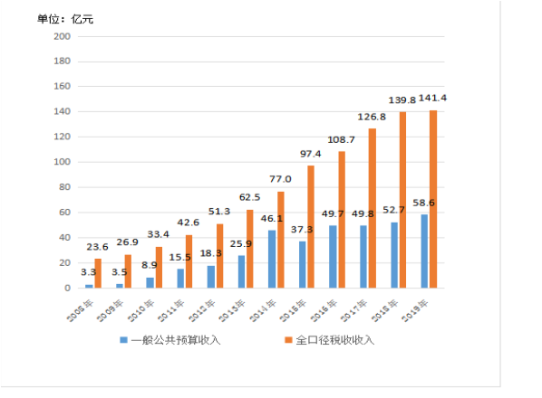 2008年-2019年光明区全口径税收和一般公共预算收入情况
