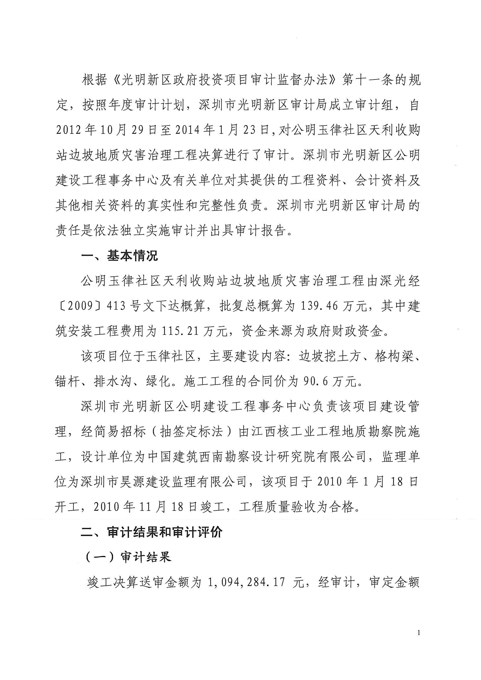 公明玉律社区天利收购站边坡地质灾害治理工程