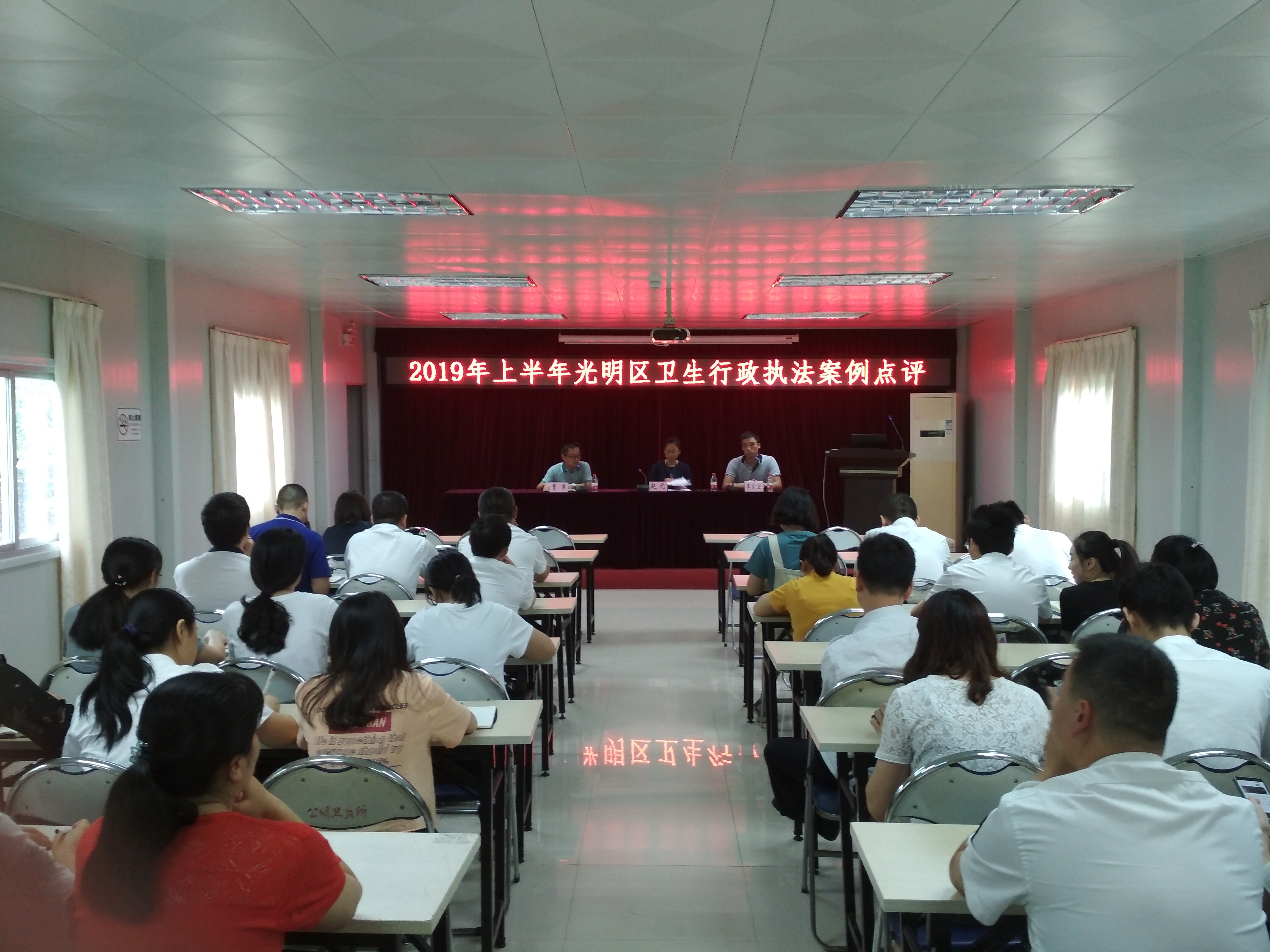 为进一步规范卫生监督执法行为,提升执法案卷质量和水平,强化监督员依法行政能力,光明区卫生监督所于2019年8月1日下午举办了卫生行政执法案例点评会,邀请深圳市卫生监督局法律顾问李家宏律师和市卫生监督局法制稽查科科长对光明区卫生监督所的行政执法案例进行点评。