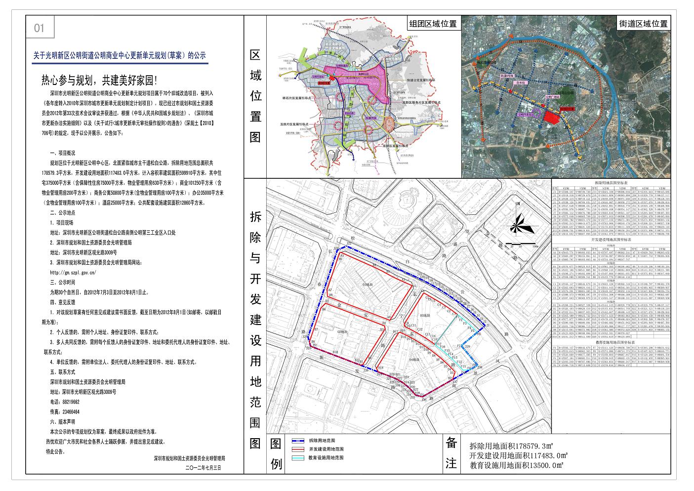 光明新区公明街道公明商业中心更新单元规划(草案)的公示