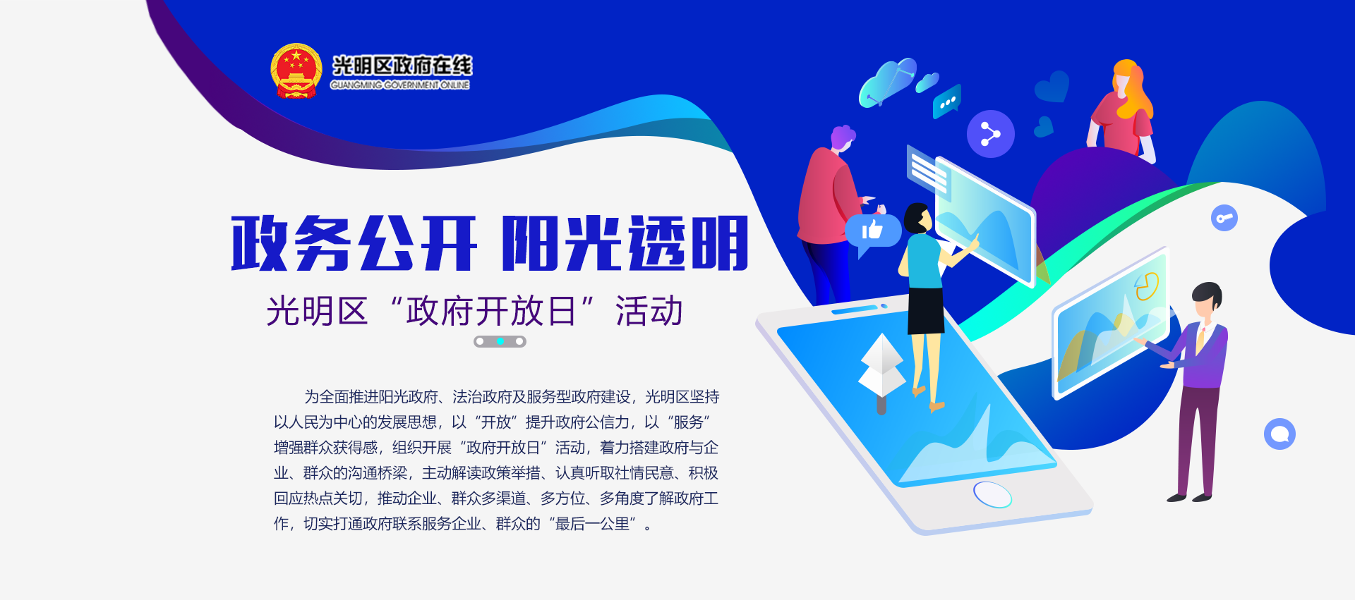 为进一步提升公众对政府工作的信任感和满意度,加强政民沟通,推动政务公开工作不断向纵深发展,光明区财政局拟开展政府开放日活动