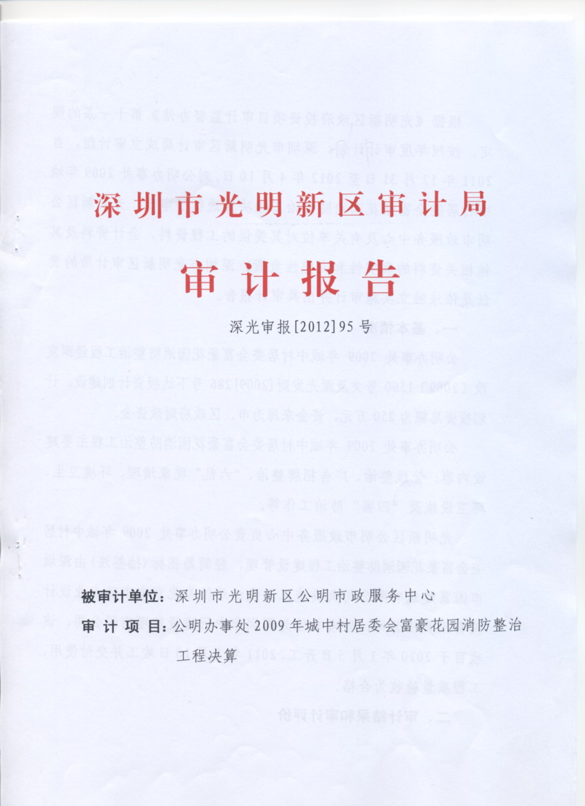 公明办事处2009城中村居委会富豪花园消防整治工程