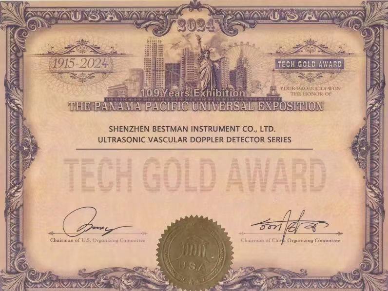 Bestman Instrument Co. Ltd., a high-end medical device enterprise based in Guangming District, recently won the prestigious Tech Gold Award at the Panama Pacific Universal Exposition for its ultrasonic vascular doppler detector series.