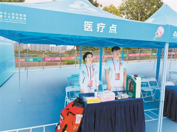 据中山大学附属第七医院医疗保障团队领队李宏宇介绍,比赛现场共计设置医疗站1个,医疗点4个,救护车3辆,各点位物资、设备均已配备齐全。