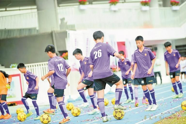 青少年在足球基地训练。