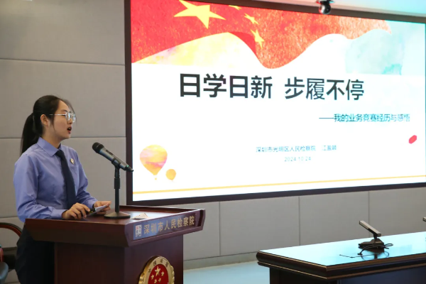 在10月举行的全市检察机关先进典型集中宣讲活动中,江盈颖作为深检先进个人代表,来到深圳市检察院,向大家分享了她在参加检察业务竞赛中的成长点滴故事。