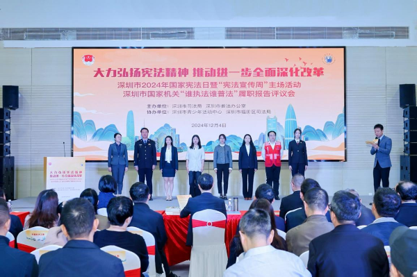 为全面推动全市深入学习宪法,深入推进法治深圳建设,12月4日,市司法局、市普法办在深圳市青少年活动中心举办深圳市2024年国家宪法日暨“宪法宣传周”主场活动、深圳市国家机关“谁执法谁普法”履职报告评议会。市委常委、政法委书记、依法治市办主任张礼卫出席此次活动,市司法局负责同志和市级各普法责任单位、各区司法局、大鹏新区政法和社会工作局、深汕特别合作区党政办等负责同志参加。