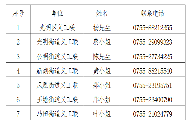 (二)志愿者在报名过程中遇到任何问题可电话联系表中工作人员。