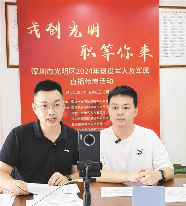 就业是最大的民生。近日,光明区退役军人事务局组织开展“戎创光明”——2024年深圳市光明区退役军人及军属专场“直播带岗”活动,以线上直播间讲解和线下主播探企两种形式结合,让就业触屏可及,助企云上揽才,进一步拓宽退役军人就业渠道,促进退役军人及军属高质量就业创业。