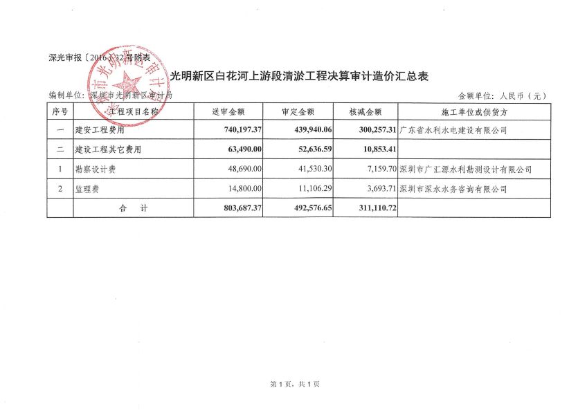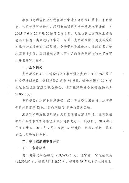 光明新区白花河上游段清淤工程