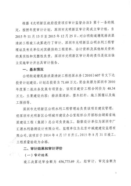 公明街道塘尾排洪渠清淤工程