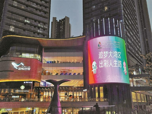 蓝鲸世界的LED屏幕化身为“全运宣传窗”。