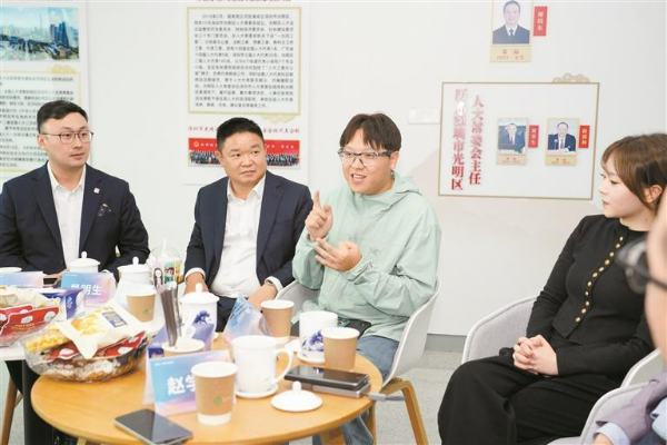 光明企业家参加“秋明茶话”分组圆桌交流。